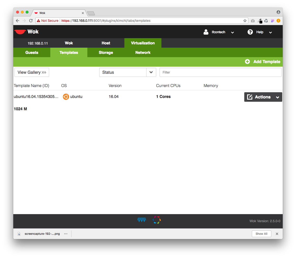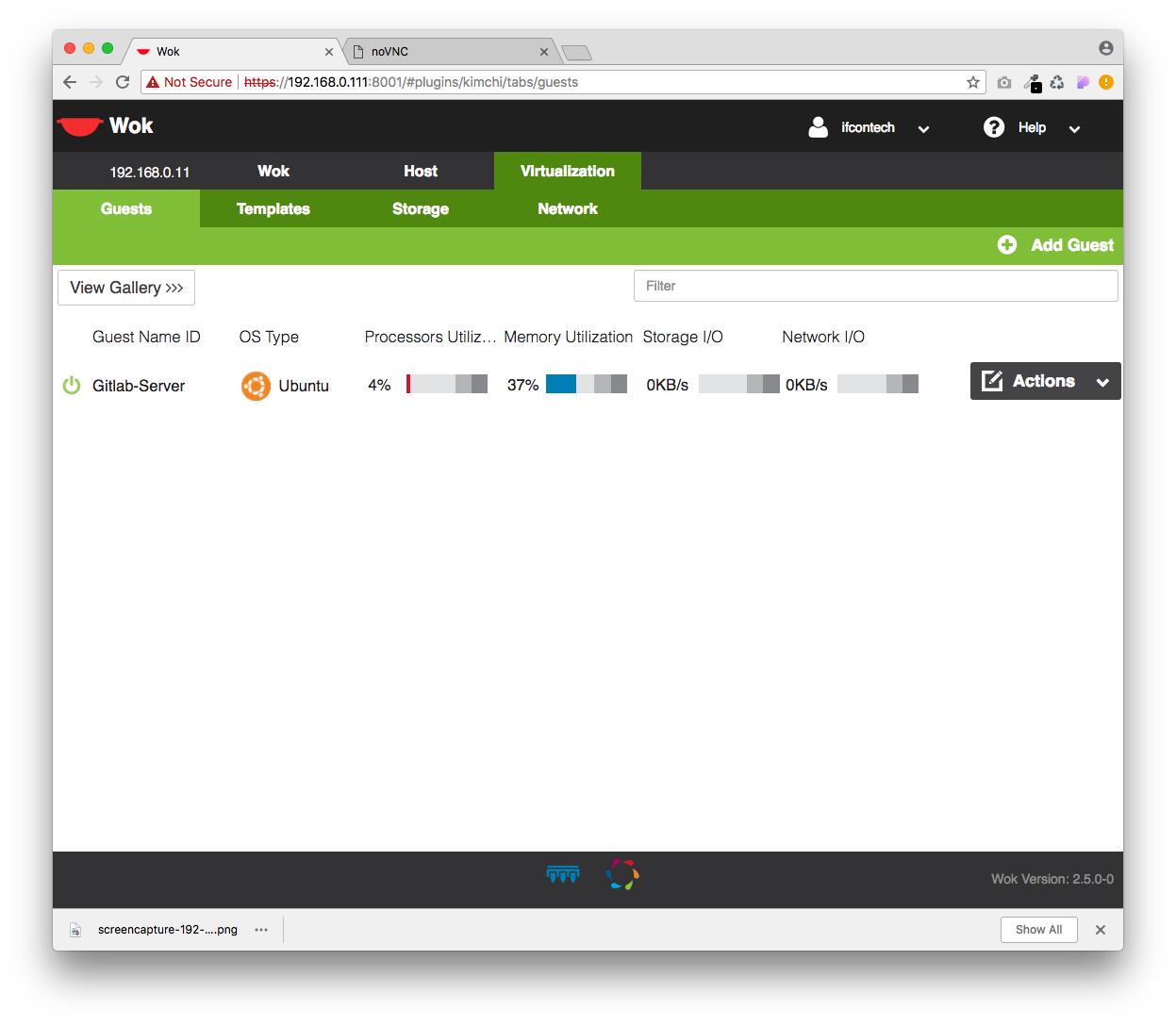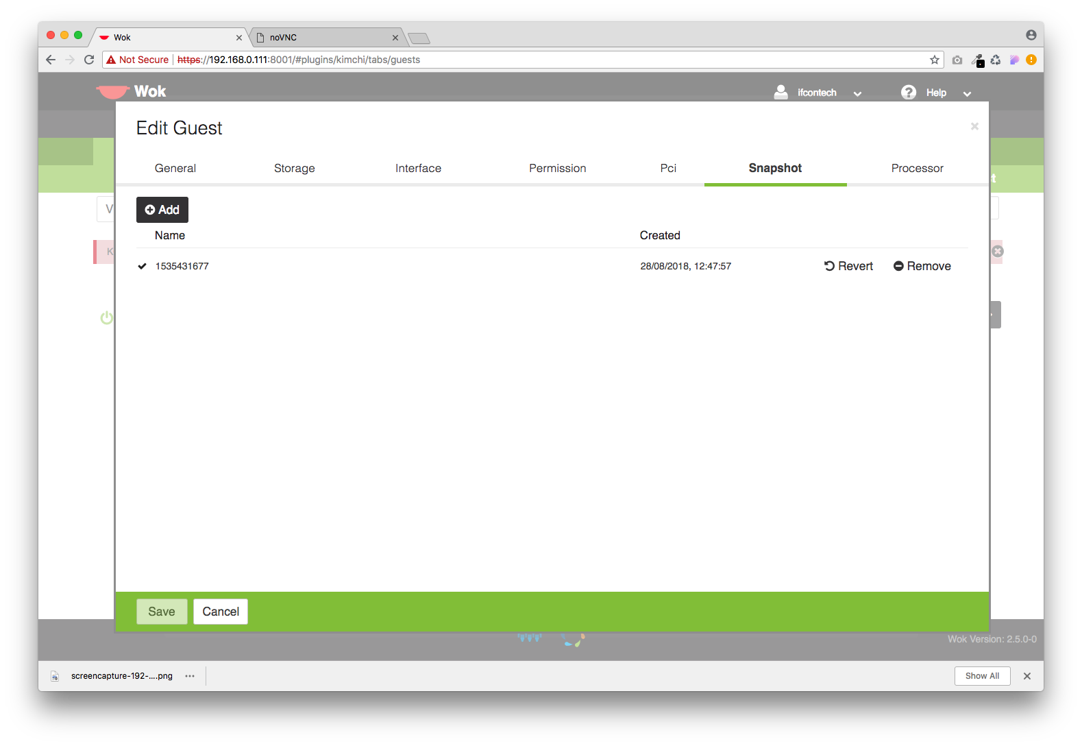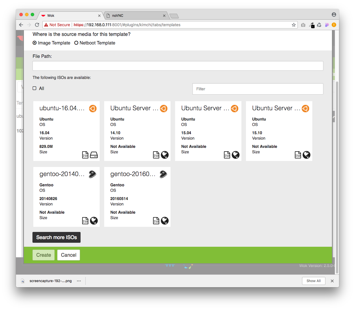 sudo dpkg -i wok-2.5.0-0.noarch.deb sudo apt-get install -f sudo service wokd start sudo dpkg -i ginger-base.noarch.deb sudo apt-get install -f sudo service wokd restart #reboot here sudo shutdown -r now sudo dpkg -i kimchi-2.5.0-0.noarch.deb sudo apt-get install -f #reboot here sudo shutdown -r now #If you have UFW enabled please add the port sudo ufw allow 8001/tcp